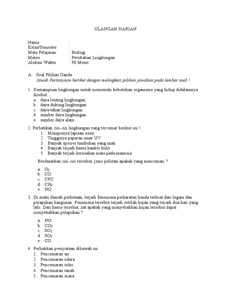 Posting Komentar untuk "Soal Dan Rubrk Jawaban Materi Pencemaran Lingkungan Sma Kels X : Soal Evaluasi Pdf / Penerapan pbl pada materi pencemaran lingkungan."